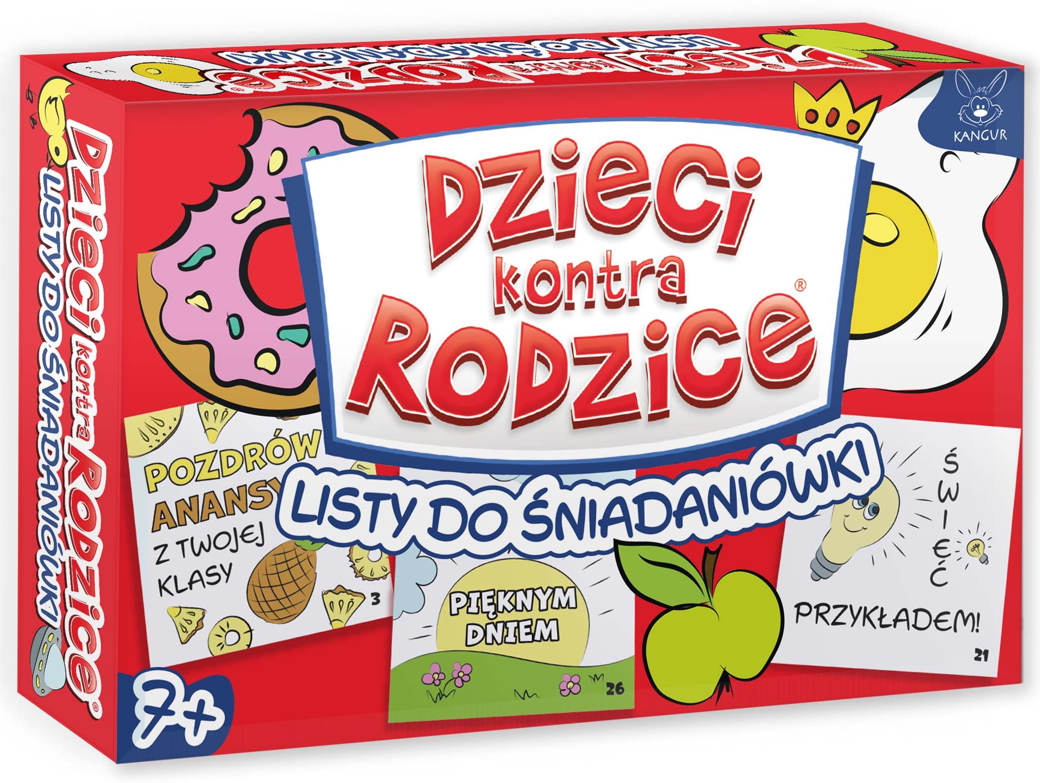 Spraw swojemu dziecku ogromna radość i odrobinę humoru! Kiedy śniadaniówka do szkoły będzie gotowa włóż do niej karteczkę z zabawnym rysunkiem i śmiesznym krótkim dopiskiem. Gdy otworzy pojemnik w szkole i zobaczy liścik na pewno będzie się śmiało razem z przyjaciółmi. To jest taki prosty gest. Do dyspozycji jest 60 zabawnych kart, jedno typowo humorystyczne, inne są o tym, że pamiętasz o swoim dziecku, a jeszcze inne motywacyjne, aby dzień był udany. Gra z serii Dzieci kontra Rodzice, tym razem bez rywalizacji, za to z przesłaniem, że dzieci i Rodzice o sobie pamiętają.