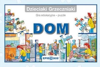 Seria Dzieciaki Grzeczniaki to proste, a jednocześnie atrakcyjne gry edukacyjne przeznaczone dla dzieci w wieku przedszkolnym i wczesnoszkolnym, które mogą być wykorzystywane przez rodziców do zabaw w domu, jak również przez pedagogów i psychologów jako narzędzie edukacyjno-terapeutyczne w przedszkolu, szkole, świetlicy, placówce wychowawczej. Gry oparte są na układaniu 60-elementowych puzzli, które po złożeniu tworzą serię scenek znanych dzieciom z codziennego życia. Gry te służą rozwijaniu i wzmacnianiu umiejętności społecznych. Układając puzzle dziecko w trakcie zabawy dowiaduje się, jakie zachowania są właściwe i poprawne. Ćwiczy także umiejętność koncentracji uwagi i współpracy z innymi graczami. Ułożone z puzzli obrazki mogą być punktem wyjścia do rozmowy z dziećmi na temat właściwych zachowań w domu i różnych miejscach publicznych, w trakcie zabaw z rówieśnikami oraz w kontakcie z osobami dorosłymi. Założeniem serii jest przekazywanie dzieciom pozytywnych wzorców zachowania. Forma gry sprzyja łatwiejszemu ich przyswajaniu, a bohaterowie barwnych ilustracji, które ukazują sytuacje znane dzieciom z dnia codziennego, są postaciami, z którymi dziecko łatwo może się utożsamić. Dzięki temu przedstawione wzorce zachowań na długo zostają w pamięci małych graczy. Na serię Dzieciaki Grzeczniaki składają się tytuły: Dom Obiad Spacer Plac zabaw Zakupy Kino Każda część to: 60 puzzli bawełniany woreczek do ich przechowywania instrukcja zawierająca propozycje zabaw z wykorzystaniem ułożonych obrazków Część „DOM” przedstawia następujące scenki: sprzątamy po sobie zabawki wspólnie miło spędzamy czas wiemy, kiedy nie przeszkadzać dbamy o zwierzęta pomagamy sprzątać w domu i wspólnie dbamy o czystość dzielimy się zabawkami Po połączeniu wszystkich elementów i ilustracji w jedną dużą planszę, warto razem z dziećmi omówić sytuacje przedstawione na obrazkach. Można też zaproponować dzieciom inne zabawy związane z kształtowaniem kulturalnych zachowań w domu; przykłady takich zabaw zawarte są w instrukcji. Autorką pomysłu serii Dzieciaki Grzeczniaki jest Joanna Grych, psycholog i pedagog pracujący na co dzień z dziećmi i młodzieżą z zaburzeniami emocjonalnymi, autyzmem, zespołem Aspergera; prowadzi zajęcia indywidualne i grupowe w zakresie usprawniania umiejętności poznawczych oraz społecznych.