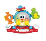 Dziecięca Kapela to zestaw instrumentów dla małego muzyka, który uczy się poczucia rytmu, zasady ich działania, oraz kształci swój słuch. Cechy zabawki: mrugająca perkusja z mini talerzami 5 klawiszy pianina odczepiane instrumenty: trąbka tamburyn gitara 2 tryby zabawy: tworzenie dowolnych melodii odtwarzanie melodii w miarę dotykania klawiszy/przycisków młotka bębna/talerzy przycisk demo odtworzy kompozycję gra śmieszne melodie i dźwięki.