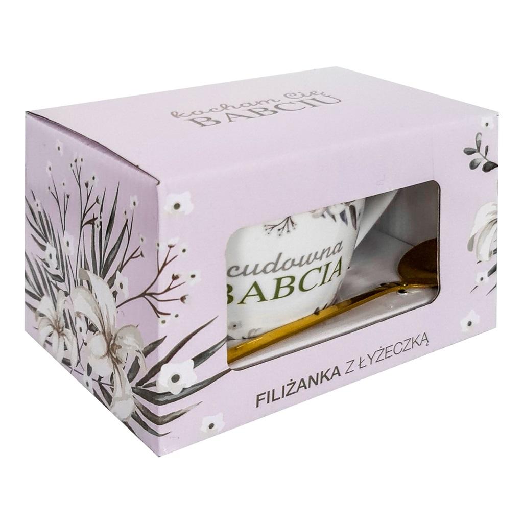 Opakowanie Dzień Babci. Filiżanka z łyżeczką