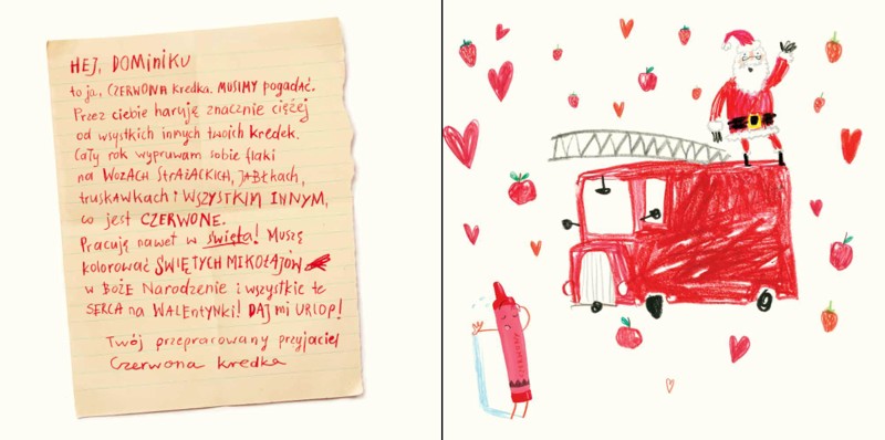 Jeden z najwięszych bestsellerów New York Timesa! Autor Drew Daywalt i Oliver Jeffers, ilustrator o międzynarodowej sławie, łączą siły w zabawnej historii, która sprawi, że dzieci już nigdy nie spojrzą na kredki w ten sam sposób. Pewien chłopiec chciałby po prostu porysować, ale kiedy otwiera pudełko z kredkami, znajduje w nim tylko listy od Kredek, a w nich jedną wiadomość: ODCHODZIMY! Dlaczego? Beżowa Kredka jest zmęczona graniem drugich skrzypiec po Brązowej, Niebieska potrzebuje przerwy od nieustannego kolorowania wody, a Różowa po prostu chce, by jej częśćiej używano. Zielona się na nic nie skarży, za to Pomarańczowa i Żółta ze sobą nie rozmawiają. Co w tej sytuacji zrobi chłopiec? Jak rozwiązać kredkowy kryzys?! Co się stanie, jeśli Kredki naprawdę odejdą?