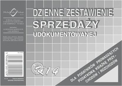 Opakowanie Dzienne zestawienie sprzedaży udokumentowanej K-14