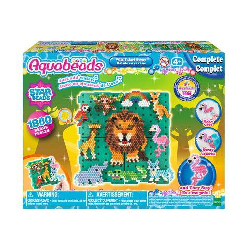 Zestaw do zabaw kreatywnych Dzikie Safari Aquabeads zapewni doskonałą zabawę. Zestaw zawiera 1800 kolorowych koralików, podkładkę do układania, spryskiwacz, 4 podstawki dekoracyjne z klipsami do mocowania kreacji oraz zestaw arkuszy z szablonami. Stwórz wspaniałe zwierzęta, które można spotkać na safari, jak lwa, żyrafę, słonia, małpę i wiele innych. Wystarczy ułożyć kolorowe koraliki na podkładce do układania i spryskać je wodą, a po wyschnięciu cieszyć się gotowymi kreacjami. Gotowe dzieła można przymocować do podstawki dekoracyjnej i stworzyć wspaniałą dekorację. Zabawa koralikami Aquabeads rozwija kreatywność i wyobraźnię, dzieci ćwiczą koncentrację oraz koordynację ręka-oko, sprawność manualną i małą motorykę, a także rozwijają umiejętność postrzegania barw. Oryginalne zabawki Aqubaeads od EPOCH zapewniają bezpieczną zabawę bez potrzeby użycia żelazka. Koraliki Aquabeads połączą się w magiczny sposób po spryskaniu wodą. Zabawki Aquabeads polecamy dla dzieci od 4 roku życia.