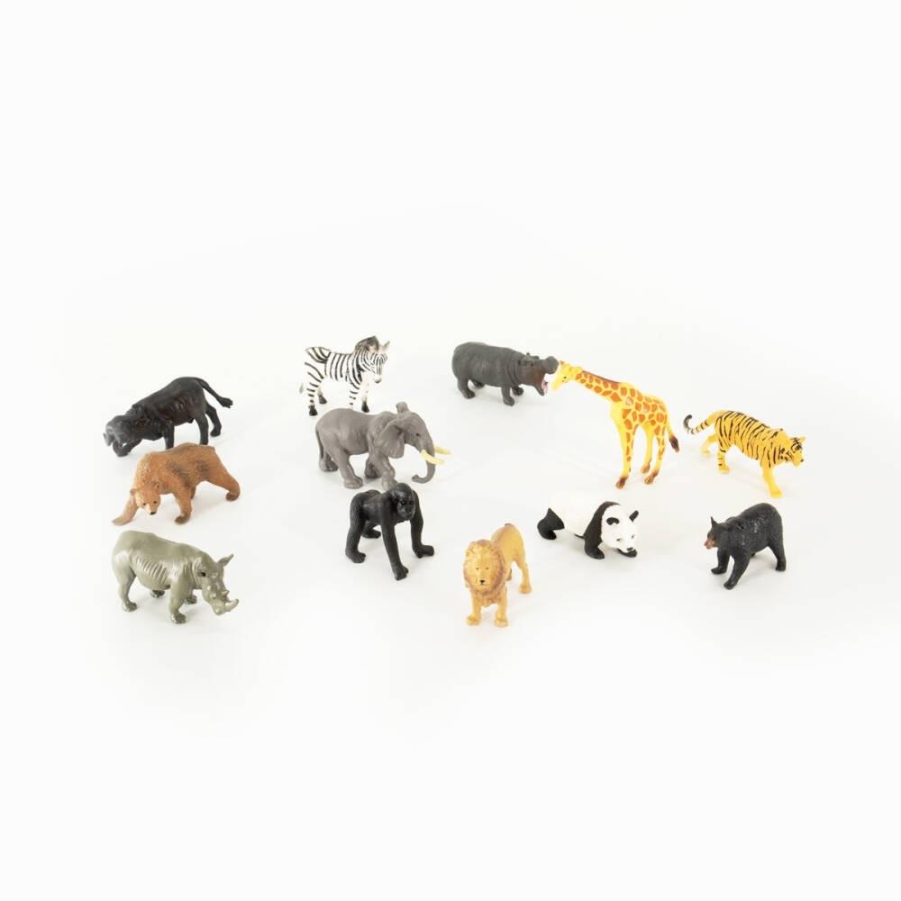 W zestawie znajduje się 12 dzikich zwierząt. Są wśród nich latające, wodne, lądowe, mięsożerne, roślinożerne.