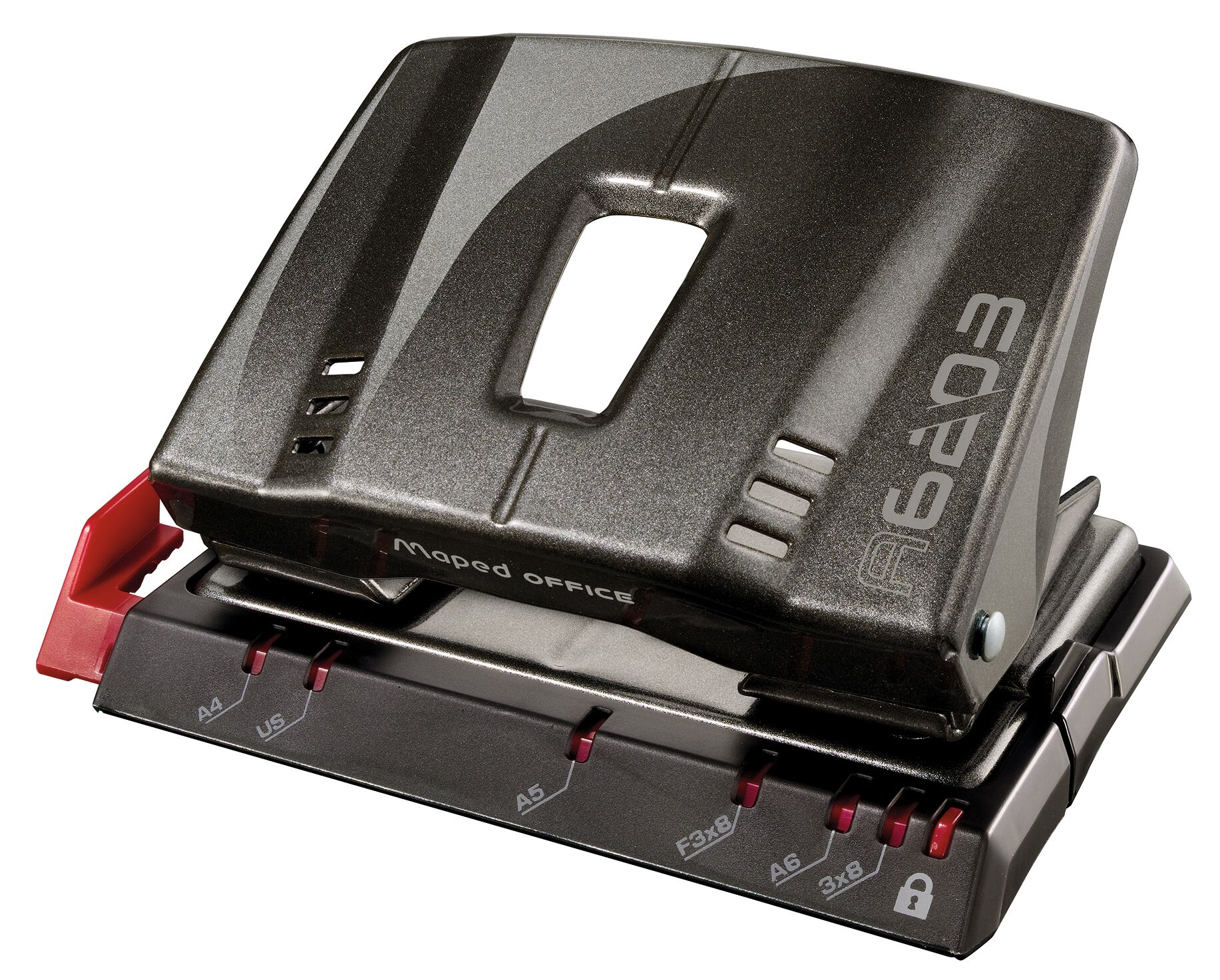 Nowoczesna profesjonalna seria biurowa wyprodukowana z najlepszej jakości materiałów przy zastosowaniu najwyższej technologii do 25 kartek. metalowy mechanizm i obudowa precyzyjne stalowe ostrza pozwalają dziurkować minimalizując niezbędny wysiłek precyzyjny ogranicznik formatu z podglądem wyraźnie oznaczonego formatu: A4, US, A5, F3x8, A6, 3x8 wgłębienia w tylnej części podstawy zgodne z rozstawem ringów w segregatorze umożliwiają szybkie dziurkowanie bez użycia listwy formatowej wskaźnik środka strony łatwy do otwierania pojemnik na ścinki odległość między dziurkami 8 mm średnica dziurek 5,5 mm opakowanie dostosowane graficznie do prezentacji w poziomie na półce i w pionie na hakach. Kolor grafitowy metaliczny. do 25 kartek.