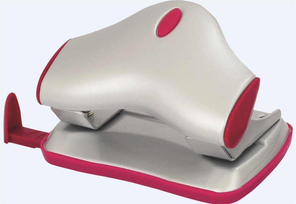 metalowy dziurkacz z antypoślizgowym elementem na ramieniu