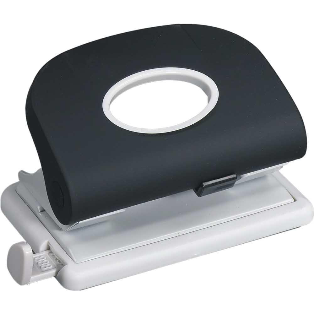 metalowa podstawka i uchwyt z niełamliwego plastikugłębokość dziurkowania 1,5 mmwysuwany ogranicznik ze wskaźnikiem środka stronypokryty miękką powłokąposiada wymienne ringi w 5-ciu kolorach: czarnym, niebieskim, czerwonym, zielonym, popielatym