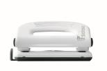 Metalowy dziurkacz biurowy z wykończeniami z tworzywa sztucznego. Kolor czarny. Posiada wskaźnik środka strony i ogranicznik formatu. Dziurkuje do 10 arkuszy. Średnica otworu 6 mm. Rozstaw dziurek 80 mm. Głębokość wsuwania kartek 12 mm. Nowatorskie rozwiązanie umożliwia usunięcie konfetti bez zdejmowania całego spodu.