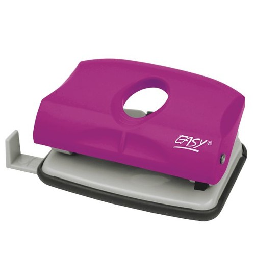 Dziurkacz jest niezbędnym wyposażeniem każdego biura i urzędu. Przyda się również do archiwizowania domowych dokumentów. Dziurkacz Easy wykonany został z tworzywa sztucznego, jest lekki i wytrzymały. Szeroka dźwignia umożliwia wygodne oparcie dłoni, co za tym idzie – wygodne dziurkowanie nawet do 15 kartek na raz! Praktyczny wskaźnik wielkości papieru ułatwi ułożenie kartek w odpowiednim miejscu, tak by wykonane otwory optymalnie pasowały do rozstawu segregatora, zaś kartki były w nim wyśrodkowane. Tacka na pozostałości papieru zapewnia zachowanie porządku w miejscu pracy. Ciekawą opcją jest możliwość podpisania swojego dziurkacza – w spodniej części zostało przewidziane miejsce na wsunięcie karteczki ze swoim imieniem. Dziurkacz przygotowany został z myślą o tych, którzy lubią urozmaicać swoje otoczenie intensywnymi, energetycznymi kolorami. Zdecydowane barwy: fioletowy, różowy, pomarańczowy i zielony ożywią każde pomieszczenie. materiał: tworzywo sztuczne kolor: różowy ilość kartek: 15 pojemnik na resztki papieru możliwość podpisania dziurkacza
