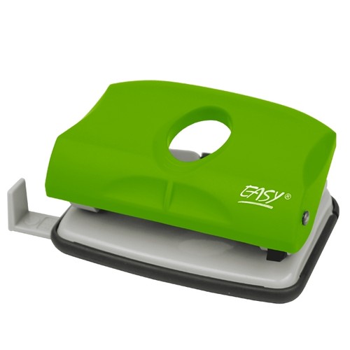 Dziurkacz plastikowy: - kolor: zielony - ilość kartek: 15 - posiada miejsce na karteczkę do podpisu oraz pojemnik na wycięte oczka - duża trwałość - żywe, intensywne kolory - idealny do szkoły, biura i domu