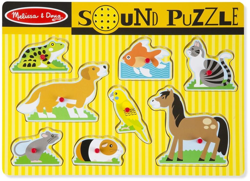 Niektóre z naszych ulubionych zwierzaków czekają, aby przemówić do Twojego dziecka. Umieść element układanki w dołku z pasującym obrazkiem na planszy i usłysz, jak zwierzę miauczy, szczeka lub wydaje inne zwierzęce odgłosy! Przyciągające wzrok i ucho puzzle poprawiają umiejętności dopasowania i słuchania. (WSKAZÓWKA: Układanka ma czujniki aktywowane światłem; aby uzyskać najlepsze wyniki, odsłoń czujnik, usuwając element w jasno oświetlonym pomieszczeniu, a następnie uruchom dźwięk, umieszczając element na planszy.) Umieść prawidłowo element układanki na planszy, aby usłyszeć 8 realistycznych dźwięków Podnieś, aby odsłonić czujnik światła, a następnie wymień (czujnik osłony), aby usłyszeć dźwięk Zabawka zachęca do rozwiązywania problemów i samodzielnej zabawy