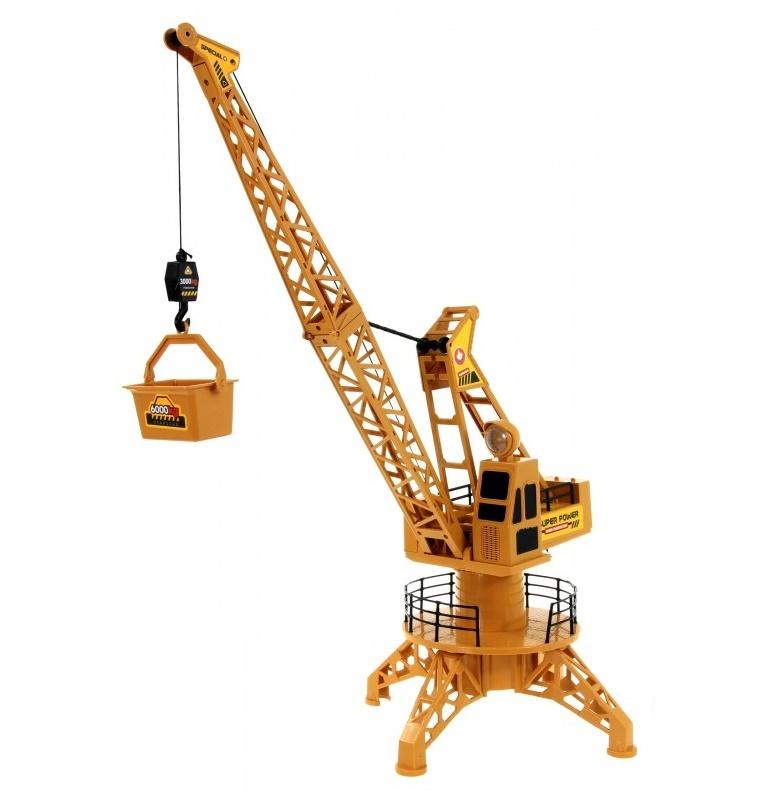 Podnoszeniem haka, oraz obrotem dźwigu steruje się za pomocą pilota z przewodem.