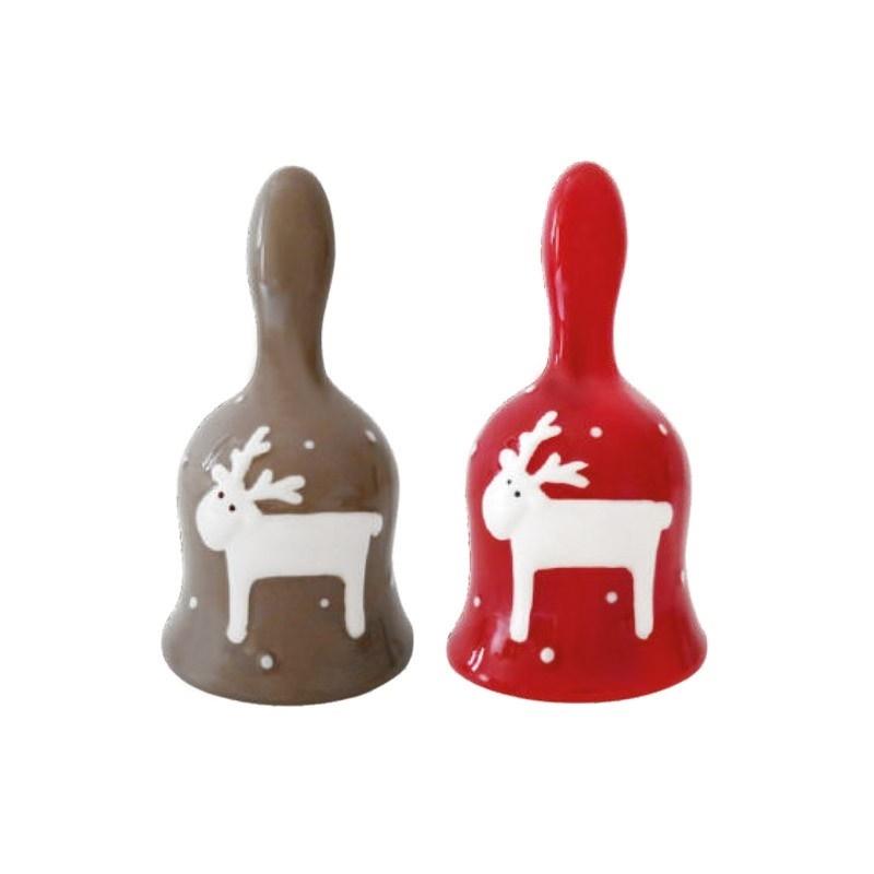 Dzwonek ceramiczny mix 2 wzorów, czerwony i brązowy z reniferem.