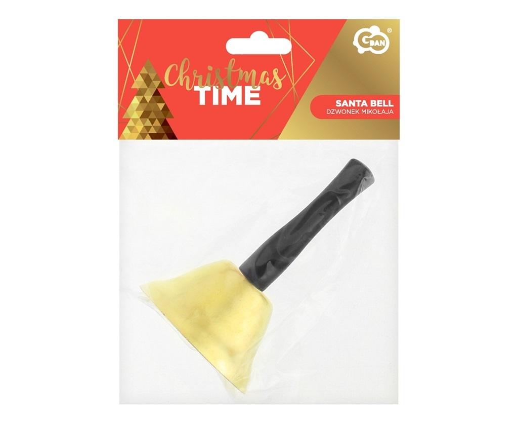 Wysokość: 12 cm. Dzwonek Świętego Mikołaja w kolorze czarno złotym. Podstawa dzwonka - matowy złoty kolor. Niezbędnik każdego Świętego Mikołaja.