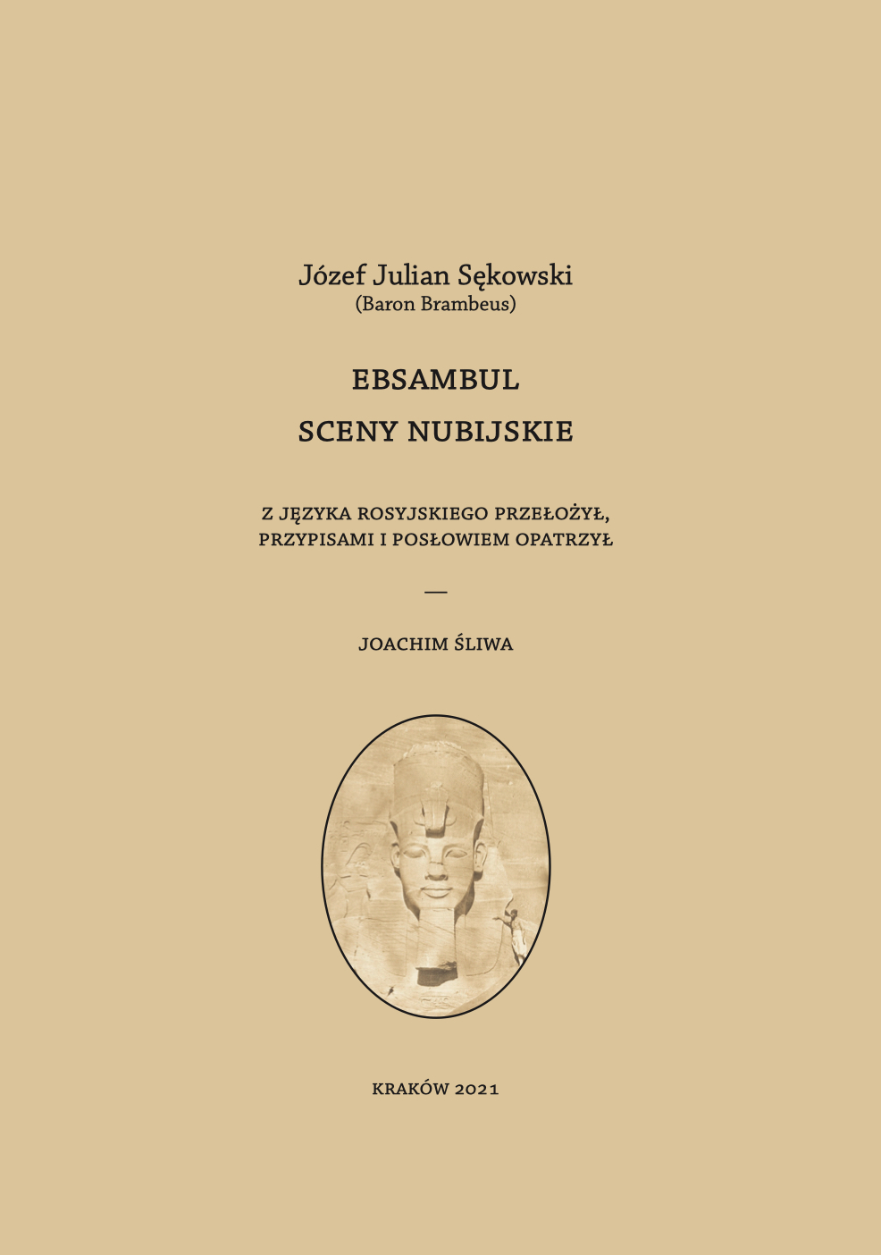 Ebsambul. Sceny nubijskie to jeden z mniej znanych tekstów Józefa Juliana Sękowskiego (1800-1858), pomyślany przez autora jako coś w rodzaju satyry lub humoreski. W opowiadaniu tym wyraził Sękowski swój stosunek do ówczesnej sytuacji panującej nie tyle w samym Egipcie, lecz w kręgach coraz częściej tu przybywających podróżników oraz wśród tzw. starożytników, których nazywał wręcz „przedsiębiorcami starożytności”. Jak w krzywym zwierciadle ukazał też inne negatywne zjawiska w rodzącej się egiptologii, jak chociażby nieograniczoną swobodę umożliwiającą wywóz zabytków oraz lekceważący, paternalistyczny i pozbawiony zazwyczaj szacunku stosunek podróżników/badaczy do ludności miejscowej, jej wierzeń i lokalnych tradycji. Józef Julian Sękowski (1800-1858) to jeden z najwybitniejszych orientalistów swej epoki, podróżnik, badacz, tłumacz i wydawca tekstów źródłowych, ponadto wykładowca i profesor uniwersytecki. Odegrał też istotną rolę w życiu literackim Rosji pierwszej połowy XIX wieku; jako literat i publicysta rozpoznawany był głównie pod pseudonimem „Baron Brambeus”. Jako badacz, krytykując postawę zachodnich orientalistów, usiłujących zgłębiać tajniki Wschodu niejako z zewnątrz, postulował konieczność głębszego zaangażowania i zerwania z europocentrycznym punktem widzenia.
