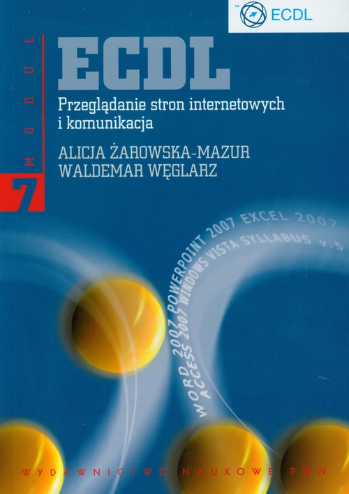 Europejski Certyfikat Umiejętności Komputerowych (European Computer Driving Licence – ECDL) potwierdza zdobycie umiejętności w zakresie obsługi komputera i programów użytkowych po odbyciu międzynarodowego systemu szkoleń. W Polsce licencji na szkolenia udziela Polskie Towarzystwo Informatyczne (PTI), ono także wydaje certyfikaty. Pełny certyfikat i szkolenie obejmują 7 modułów tematycznych dotyczących podstaw posługiwania się komputerem, systemu operacyjnego, sieci i Internetu oraz podstawowych aplikacji (edytor tekstu, arkusz kalkulacyjny, prezentacje i baza danych). Każdy z modułów zakończony jest egzaminem – zdanie wszystkich prowadzi do uzyskania certyfikatu ECDL. Ponadto można otrzymać dodatkowe certyfikaty potwierdzające zdobycie umiejętności w zakresie wykorzystania narzędzi CAD w projektowaniu (ECDL CAD), korzystania z Internetu (e-Obywatel), projektowania stron internetowych (ECDL WebStarter). Prezentowana książka jest rekomendowana przez PTI jako materiał szkoleniowy. Obecne wydanie zostało opracowane na podstawie sylabusa w wersji 5.0, wprowadzonego na przełomie lat 2008/2009. Moduł 7 obejmuje następujące zagadnienia: * pojęcia dotyczące Internetu i stron internetowych; * bezpieczeństwo w Internecie; * używanie przeglądarek; * korzystanie z formularzy i wyszukiwanie informacji; * zapisywanie stron WWW na dysku i ich drukowanie; * pojęcia dotyczące komunikacji elektronicznej; * korzystanie z poczty elektronicznej; * zarządzanie skrzynką pocztową.