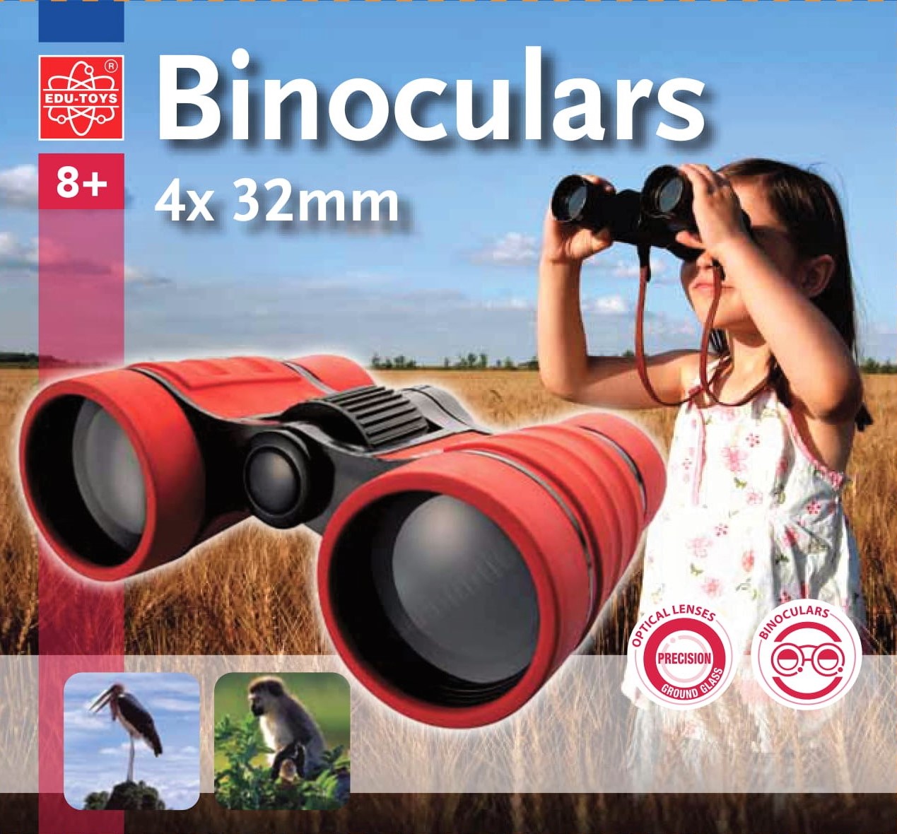 Lornetka ma szklane soczewki i czułe pokrętło ostrości, a także pasek na szyję i pokrowiec. Ma 4x powiększenie i obiektyw o średnicy 32 mm. Wiek 8+