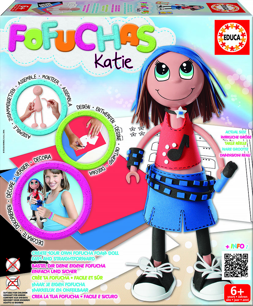 Złóż w całość elementy korpusu lalki. Zaprojektuj swoją Fofuchas według dołączonych szablonów lub własnej wyobraźni. Udekoruj swoją laleczkę, jak tylko zechcesz. Zawartość: składany korpus z tworzywa sztucznego 5 arkuszy pianki EVA samoprzylepna taśma dwustronna szablony naklejki do zdobienia twarzy lalki instrukcja obrazkowa. Zabawka dla dzieci w wieku 6+