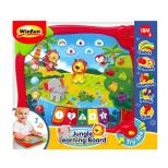 Ekran tabletu ma wiele funkcyjnych punktów. Dziecko naciska je i słucha melodyjek oraz odgłosów. Dobrze się bawi i jednocześnie rozwija percepcję słuchową. Cechy zabawki: mówi po polsku, uczy liczyć do 5, zwierzątka z dżungli uczą nazywać: cyferki, obrazki, kolory, odgłosy zwierząt, quiz, działa na dotyk. Wiek: 18 m+ Wymiary opakowania: 29 x 26 x 1 cm Wymaga 2 baterii typu AA (dołączono do zestawu)