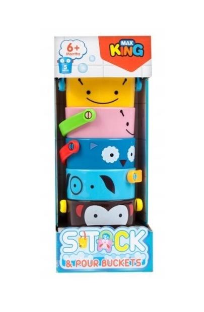 Kolorowe, uśmiechnięte wiaderka to pomysłowa zabawka dla dzieci już od 6. miesiąca życia. Maluch może podnosić wiaderka, poruszać uchwytami i układać je jedno na drugim. Zabawka rozwija sprawność manualną dziecka.