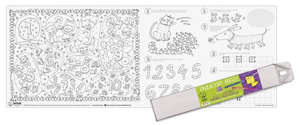Jak to u nas zawsze bywa, EDUKACYJNY ARKUSZ XXL to ogromna powierzchnia (160 cm x 60 cm) do kolorowania kredkami, flamastrami i farbami, ale także łamigłówki i zadania ułatwiające dzieciom naukę liter/prostych matematycznych działań/ angielskich słówek/zasad działania kalendarza.