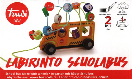 Drewniany autobus na sznurku do ciągnięcia Labirynt z przesuwanymi elementami wspomaga motorykę dziecka. Wiek: 1+