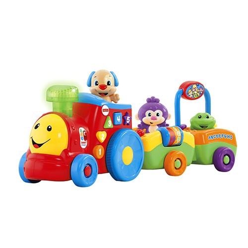 Proszę wsiadać! W pociągu czeka już Szczeniaczek, Małpka i Żabka oraz ponad 50 piosenek, melodyjek i wypowiedzi! Naciśnij zaświecający się komin, aby uruchomić urocze piosenki do wspólnego śpiewania oraz ruch zabawki – pociąg zacznie jechać! Możesz też umieścić Szczeniaczka na miejscu konduktora, aby słuchać przeciwieństw. Pięć przycisków o różnych kształtach uczy kolorów, kształtów, cyfr i nie tylko. W Pociągu Szczeniaczka wykorzystano innowacyjną, specjalną technologię „Poziomy nauki”, która pozwala zmieniać interaktywne treści w miarę rozwoju dziecka. Każde dziecko rozwija się w swoim własnym tempie, dlatego technologia „Poziomy nauki” pozwala na wybór poziomu z odpowiednimi dla wieku i umiejętności maluszka piosenkami, wyrażeniami i zwrotami. Radosne piosenki, wypowiedzi i dźwięki odpowiednie na kolejne etapy rozwoju dziecka w ramach trzech poziomów zabawy. Wystarczy przesunąć przełącznik! Technologia „Poziomy nauki” Poziom 1 – Odkrywanie — od 6. miesiąca Dźwięki i pierwsze słowa rozbudzają ciekawość dziecka Poziom 2 — Zachęcanie — od 12. miesiąca Pytania i proste zadania zachęcają malucha do działania Poziom 3 – Naśladowanie — od 18. miesiąca Zabawa w odgrywanie ról pobudza wyobraźnię dziecka Cechy • Naciśnij komin, aby uruchomić pojazd z napędem, światełka i dźwięki • Pociąg z napędem zachęca do zabawy w raczkowanie • Ponad 50 piosenek do wspólnego śpiewania, melodyjek i wypowiedzi • W produkcie zastosowano technologię „Poziomy nauki”, dzięki której treści edukacyjne można dostosować do etapu rozwoju maluszka • 3 poziomy zabawy z piosenkami, wyrażeniami, zwrotami i dźwiękami odpowiednimi do wieku i etapu rozwojowego Twojego maluszka • Ręczny przełącznik „Poziomów nauki” • Na miejscu konduktora można umieścić dowolną figurkę, uruchamiając ciekawe wyrażenia i dźwięki • Aktywizujące zabawki, w tym przesuwana biedronka, wagonik z literkami, wałeczek z cyferkami, klekoczące krążki i nie tylko • Naciśnij dowolny z pięciu przycisków o różnych kształtach, aby uruchomić jeszcze więcej wyrażeń, dźwięków i zabaw • W zestawie grzechoczące figurki Szczeniaczka, Małpki i Żabki o rozmiarze doskonale pasującym do małych rączek • Bez kabli, wtyczek i związanego z tym bałaganu • Uczy kolorów, kształtów, cyfr, liter, przeciwieństw i nie tylko • Wymaga 2 baterii typu C - Zabawka dla dzieci w wieku 6-36 miesięcy
