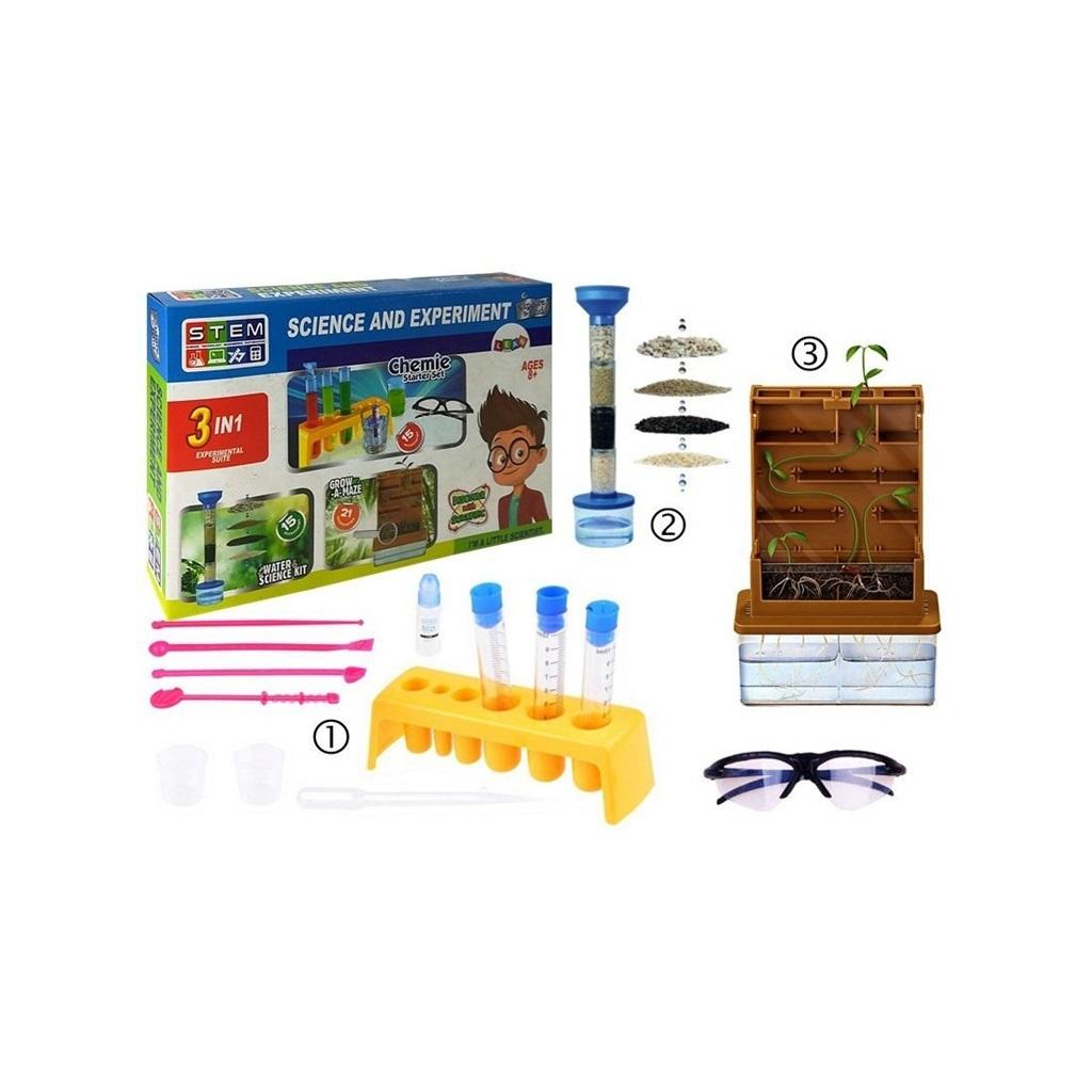 Stworzyliśmy doskonały zestaw dla miłośników nauki, doświadczeń i eksperymentów. Nasz zestaw składa się z trzech zestawów. Pierwszy zestaw pozwoli Twojemu dziecku poznać chemię i zrozumieć jej działanie. Natomiast drugi z nich to zestaw do stworzenia filtratora wody. To połączenie przyjemnej nauki i twórczej zabawy. Na całym świecie powstają rozmaite systemy aby zaoszczędzić wodę, które pozwalają uzdatniać wodę, by nadawała się ona do picia prosto z kranu oraz by mogła zostać powtórnie wykorzystana, choćby do podlewania ogródka. Teraz i Twoje dziecko może własnoręcznie stworzyć system, który pozwoli poeksperymentować z wodą. Zestaw Małego Naukowca do samodzielnego wykonania filtra do wody zawiera wiele akcesoriów, które będą niezbędne podczas eksperymentów. Zobacz, jak samodzielnie filtrować wodę. Kolejnym zestawem jest labirynt roślinny. Po prostu posadź fasolę i patrz, jak kiełkuje i wije się przez labirynt. Zachęcaj dziecko do poznawania biologii roślin i zainteresowania przyrodą dzięki tej przezroczystej doniczce. Do tego eksperymentu wymagana jest suszona fasola i gleba (brak w zestawie). Czy roślina może znaleźć drogę przez labirynt? Brzmi to niemożliwe, ale po prostu patrz, jak rośliny przedzierają się przez zaprojektowany przez dziecko labirynt. Może nawet obserwować, jak korzenie rozwijają się w przezroczystym pojemniku na glebę. Obserwuj, jak korzenie rozwijają się również w przezroczystym pojemniku na glebę. Zabawny i edukacyjny zestaw to wspaniały prezent, który dzieci pokochają. Pamiętaj, aby codziennie podlewać ukochane rośliny i wygrzewać je w ciepłym słońcu, aby szybciej rosły.