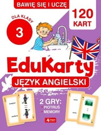 "EduKarty. Język angielski" to pomoc w nauce słownictwa języka angielskiego dla dzieci w klasach od zerówki do trzeciej. Zestaw przeznaczony jest do nauki w domu, w szkole i podczas kursów językowych.