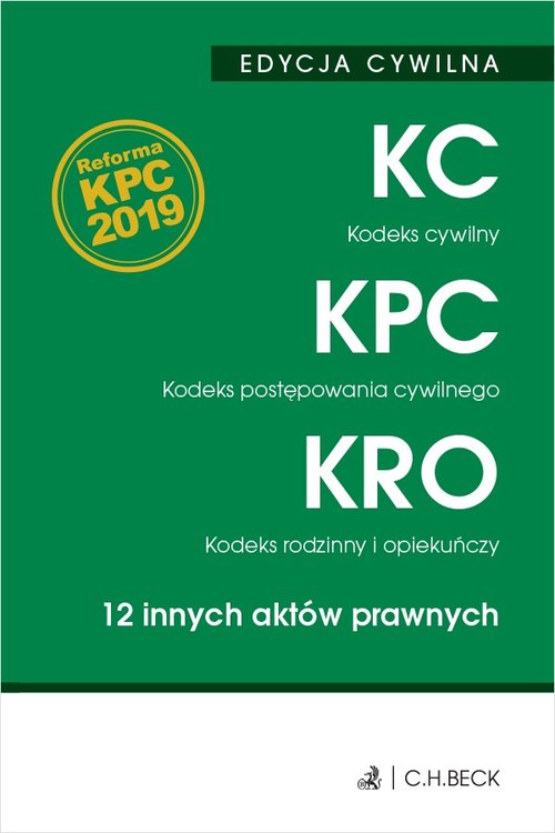 Stan prawny: 25 sierpnia 2019 r. Zawiera zmiany wprowadzone przez ustawę z 4.7.2019 r. o zmianie ustawy – KPC oraz innych ustaw, a także zmiany wynikające z innych ustaw nowelizujących. Podwójnym stanem prawnym oznaczono treść artykułów, które wchodzą w życie: 21.8.2019 r. (Dz.U. z 2019 r. poz. 1469), 7.9.2019 r. (Dz.U. z 2019 r. poz. 1043), 8.9.2019 r. (Dz.U. z 2019 r. poz. 1495), 20.9.2019 r. (Dz.U. z 2019 r. poz. 1146), 7.11.2019 r. (Dz.U. z 2019 r. poz. 1469), 1.1.2020 r. (Dz.U. z 2019 r. poz. 1495), 7.2.2020 r. (Dz.U. z 2019 r. poz. 1469), 1.3.2020 r. (Dz.U. z 2018 r. poz. 398 ze zm.), 1.6.2020 r. (Dz.U. z 2019 r. poz. 1495), 7.8.2020 r. (Dz.U. z 2019 r. poz. 1469). Seria Teksty Ustaw Becka. Edycja Sądowa w nowej odsłonie! Miękka oprawa. Registry – wcięcia na marginesach oznaczone skrótami ustaw ułatwiające ich znalezienie. Rozbudowana pula aktów prawnych - pełniejszy wybór ustaw i rozporządzeń. Praktyczne tabele podsumowujące zmiany - wykaz terminów wejścia w życie zmian oraz artykułów, których zmiany dotyczą. Dostęp online - do wszystkich aktów prawnych zawartych w zbiorze, aktualizowanych na bieżąco. EDYCJA CYWILNA zawiera 15 aktów prawnych, w tym 6 uwzględnionych w zbiorze po raz pierwszy: Kodeks cywilny, Przepisy wprowadzające Kodeks cywilny, Kodeks postępowania cywilnego, Przepisy wprowadzające kodeks postępowania cywilnego, Ustawę o księgach wieczystych i hipotece, Kodeks rodzinny i opiekuńczy, Ustawę - Przepisy wprowadzające Kodeks rodzinny i opiekuńczy, Ustawę o kosztach sądowych w sprawach cywilnych, Prawo prywatne międzynarodowe. Po raz pierwszy w zbiorze: Prawo o aktach stanu cywilnego, Ustawę o komornikach sądowych, Ustawę o kosztach komorniczych, Rozporządzenie w sprawie opłat za czynności radców prawnych, Rozporządzenie w sprawie opłat za czynności adwokackie, Rozporządzenie w sprawie określenia stawek wynagrodzenia biegłych, taryf zryczałtowanych oraz sposobu dokumentowania wydatków niezbędnych do wydania opinii w postępowaniu cywilnym.