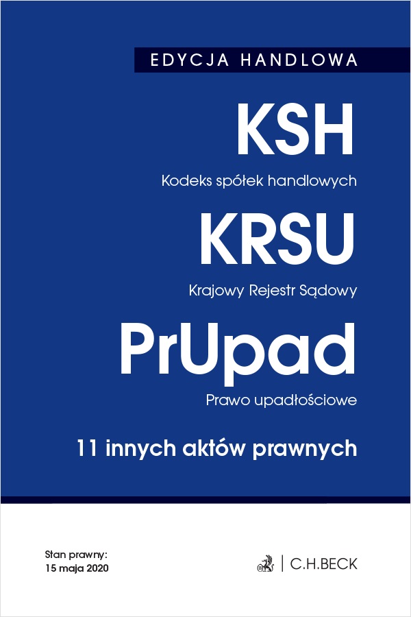 EDYCJA HANDLOWA. Kodeks spółek handlowych. Krajowy Rejestr Sądowy. Prawo upadłościowe. 11 innych aktów prawnych (Stan prawny: 15 maja 2020 r) (wyd.33)