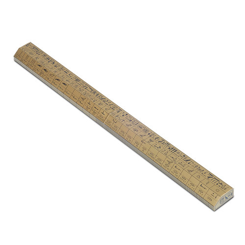 Od samego początku 5000 lat temu królewski łokieć odegrał dużą rolę w kulturze starożytnego Egiptu będąc jednym z pierwszych wzorców miar. Wymiary praktycznie każdego egipskiego zabytku bądź eksponatu są wyrażone w ułamkach lub wielokrotnościach egipskiego łokcia królewskiego. Pięknie wykonane, pozłacane wzorce łokcia darami dla świątyń bądź chowane razem z nobliwymi zmarłymi. Na przykład sześć drewnianych wzorców królewskiego łokcia znaleziono w grobie Tutanchamona. Opis: Ta starannie zaprojektowana replika łokcia z grobu Amenemopa, urzędnika króla Horemheba, pozwala ci dotknąć starożytnej historii! Hieroglify podziałów (palec, ręka, pięść, rozpiętość, ramię itp.) są łatwo rozpoznawane, a centymetrowe i calowe skale na dole pozwalają na ciekawe porównania ze współczesną skalą. Wymiary po złożeniu: 523 x 42 x 20 mm Zestaw zawiera: dwa arkusze lakierowanego sztancowanego kartonu. Sztancowanie pozwala na wyjęcie części bez wycinania. polskojęzyczną instrukcję polskojęzyczną wkładkę objaśniającą znaczenie hieroglifów