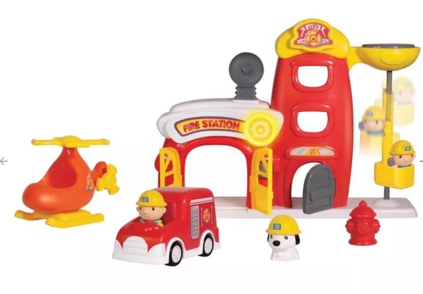 Alarm! Dzielna ekipa strażacka melduje gotowość do misji ratunkowej. Przeżyj wspaniałą przygodę z zestawem figurek do zabawy w odgrywanie ról. Poza strażakami i ich dzielnym pieskiem ratownikiem, znajdziesz tu stację strażaków, wóz strażacki, helikopter, a nawet hydrant. Stacja wyposażona jest w przycisk, uruchamiający lampkę i sygnał alarmowy. Specjalna winda umożliwia strażakom szybki zjazd na dół