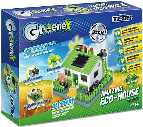 zestaw pozwala na zbudowanie eko domu z solarnymi elementami: solarny wiatrak, solarny dzwonek do drzwi, solarny znak LED