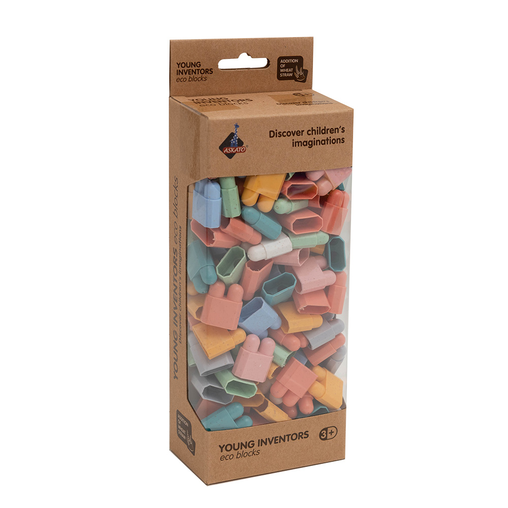Zestaw zawiera 150 elementów, które umożliwiają tworzenie nieskończonych konstrukcji. Wykonane z ekologicznych materiałów klocki są przyjazne dla środowiska i trwałe, co zapewnia długotrwałą zabawę.