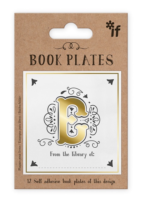 Zestaw 12 samoprzylepnych ekslibrisów z literą E. Naklejki są złocone. Całość zapakowana w eleganckie opakowanie kraft. Doskonały dodatek do prezentu dla mola książkowego.