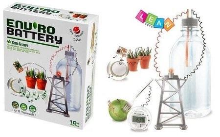 Zestaw Kreatywny Eksperyment Naukowy Ekologiczna Bateria Naukowy zestaw z serii "Uczy i bawi" pozwoli małym naukowcom poznać alternatywne źródła energii, nawet, tak zaskakujące, jak cytryna! Ekologiczna bateria, którą zbudujesz dzięki elementom zestawu, korzysta z naturalnych materiałów, takich jak błoto, cytryny czy woda, dzięki którym potrafi zasilić żarówkę, zegarek, czy uruchomić układ dźwiękowy. To nie czary, ale nauka! Ten niesamowity ekologiczny zestaw naukowy pozwala na skonstruowanie wielu zaskakujących źródeł energii za pomocą soków owocowych, warzyw, monet, sztućców i innych przedmiotów! Zabawka rozwija zdolności poznawcze dziecka, ciekawość oraz wprowadza je w fascynujący świat nauki. Niezastąpiona pomoc naukowa dla małego ucznia. Zestaw zawiera: - 4 płytki cynkowe (srebrno-szare) - 4 płytki miedziane (brązowe) - 4 przewody połączeniowe - 2 plastikowe kubeczki - papierowy kubeczek - 2 specjalne zakrętki do butelek - wieża z diodą led - chip dźwiękowy - wyświetlacz lcd z pokrywą ochronną - zestaw przezroczystych taśm klejących - instrukcja z tabelą do wykonywania doświadczeń. Wymiary opakowania: 17cm x 22cm x 6cm