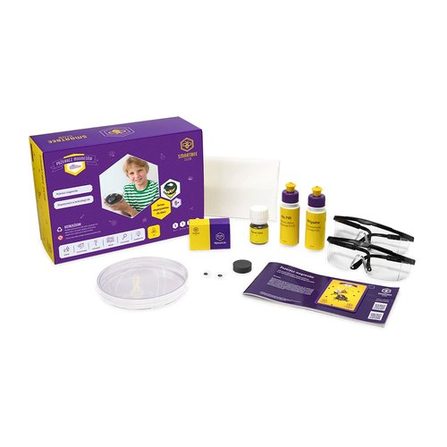 Dobra zabawa w naukowym stylu. Czyli to, co mali odkrywcy lubią najbardziej! Czy tworząc slime, można poznać właściwości pola magnetycznego? TAK! We własnoręcznie wykonywanym eksperymencie dzieci uczą się o mocach magnetyzmu, dowiadują się, czym jest mieszanina i badają właściwości substancji. zestaw wsparty jest technologią rozszerzonej rzeczywistości AR czas eksperymentowania ok. 60 min. eksperymenty opracowane zostały przez naukowców związanych z Polską Akademią Nauk zestaw rekomendowany przez Stowarzyszenie MENSA Polska i Instytut Fizyki Molekularnej PAN szczegółowe instrukcje i ciekawostki dostępne online na stronie zestawu zobacz eksperymenty z zestawu bezpieczny produkt, spełniający wymogi polskiego i unijnego ustawodawcy błyskawiczna wysyłka w ciągu 24h wyprodukowano w Polsce! W BeeBoxie Pożeracz magnesów znajduje się jedno tajemnicze doświadczenie do wykonania w domu w asyście osoby dorosłej oraz eksperyment w technologii rozszerzonej rzeczywistości. Zestaw zawiera wszystkie potrzebne do eksperymentu składniki i akcesoria: okulary ochronne (2 pary) folia ochronna rękawiczki ochronne (2 pary) klej PVA (mieszanina alkoholu poliwinylowego) (60 ml) aktywator (mieszanina kwasu borowego) (30 ml) proszek żelaza (10 g) magnes ferrytowy (1 szt.) naklejki oczy (2 szt.) szalka Petriego (1 szt.) ekran do hologramu (1 szt.) karta do AR (rozszerzonej rzeczywistości) (1 szt.) drukowana instrukcja bezpieczeństwa z przebiegiem eksperymentów praz ciekawostkami (1 szt.) Mini BeeBox Pożeracz magnesów to doskonały sposób na rozpoczęcie przygody w SmartBee Club. Zawarte w nim eksperymenty znajdziecie również w zestawie subskrypcyjnym Magneto. W eksperymentach przedstawiamy naukę w formie fantastycznej zabawy. Pielęgnujemy radość samodzielnego odkrywania wzbogaconą o zdobywanie wiedzy z zakresu dziedzin STEM (science, technology, engineering, math). W Strefie Klubowicza odkryjecie instrukcje krok po kroku do każdego z eksperymentów, w jeszcze ciekawszej formie. Co kilka kroków czekają na Was ciekawostki rozwijające wiedzę, a także filmy z animowanymi bohaterami SmartBee Club. To zabawa zapewniająca wiele wartościowych chwil z dzieckiem!