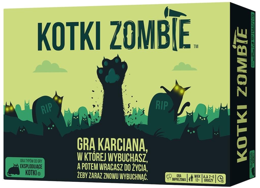 Eksplodujące Kotki: Zombie to samodzielna talia 61 kart z zupełnie nowymi ilustracjami, nawiązującymi do klimatu horroru. Część z nich to mechanizmy znane z gry podstawowej, ale są też zupełnie nowe efekty, na czele z kotkami zombie, pozwalającymi pozostać w grze nawet po spotkaniu z eksplodującym kotkiem.