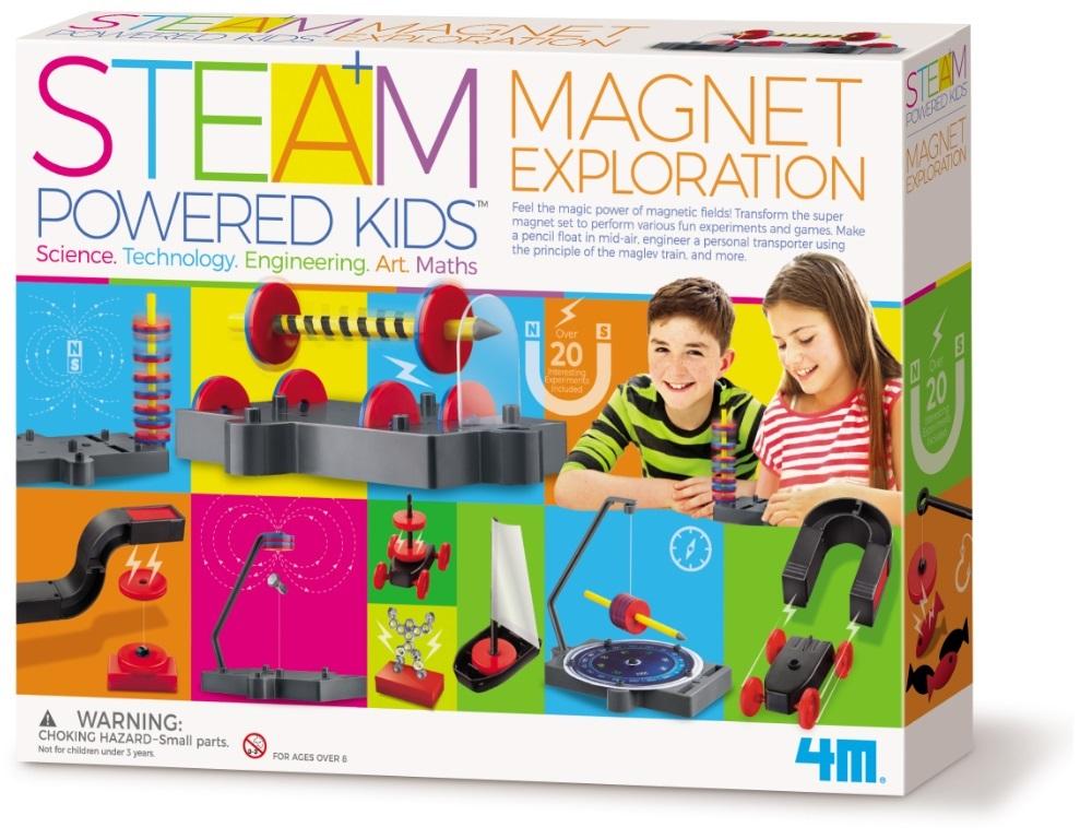 Poczuj magiczną moc pól magnetycznych! Użyj zestawu super magnesów, aby przeprowadzać różne zabawne eksperymenty i gry. Spraw, by ołówek unosił się w powietrzu, skonstruuj osobisty transporter na zasadzie kolei magnetycznej i nie tylko. Zestaw zawiera: ponad 40 elementów do budowy wyścigówki z super magnesem, jachtu z kompasem, stołowego UFO, osobistego transportera magnetycznego, pisma antygrawitacyjnego i nie tylko, a także 16-stronicową instrukcję. Wiek: 8+