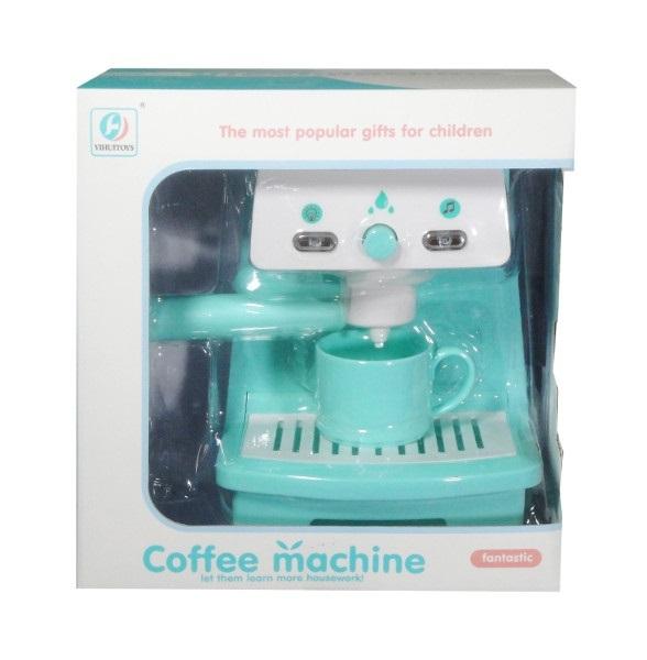 Obowiązkowe wyposażenie kuchni małej gospodyni domowej.#&Plastikowy ekspres do kawy na baterie. Dzięki modułowi dżwiękowemu, zabawka jeszcze bardziej oddaje działanie rzeczywistgo urządzenia. Ponadto zabawka świeci kolorowymi świtełkami. #&Produkt zapakowany jest w kartonowe opakowanie z przezroczysym kloszem. #&Produkt zasilany jest na baterie typu AA.Baterie nie są załączone w zestawie. #&Zabawka jest przeznaczona dla dzieci powyżej 36 miesięcy.#