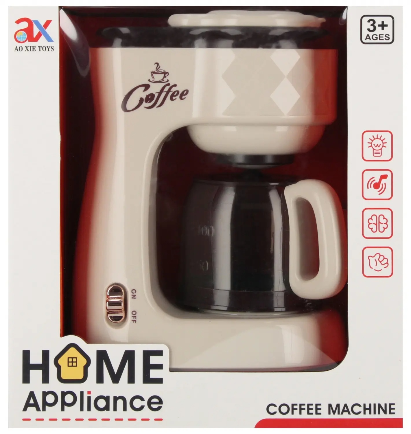 Ekspres do kawy posiada efekty świetlne oraz dźwiękowe, posiada przełącznik którym włączasz/wyłączasz ekspres, posiada otwierany pojemnik na kawę, po uzupełnieniu i włączeniu go możesz zaparzyć pyszną kawę.