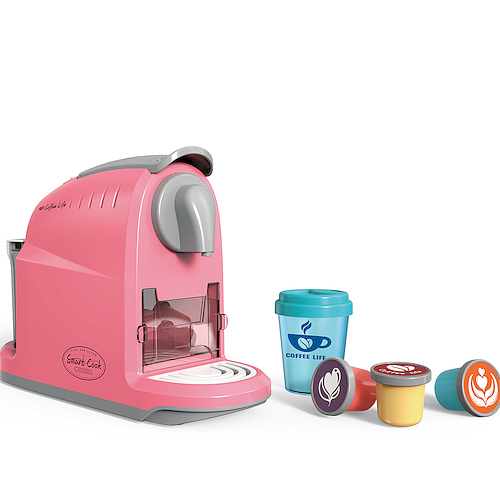 Designerski, w kolorze różowym z potrzebnymi akcesoriami by zaparzyć świetną kawę.