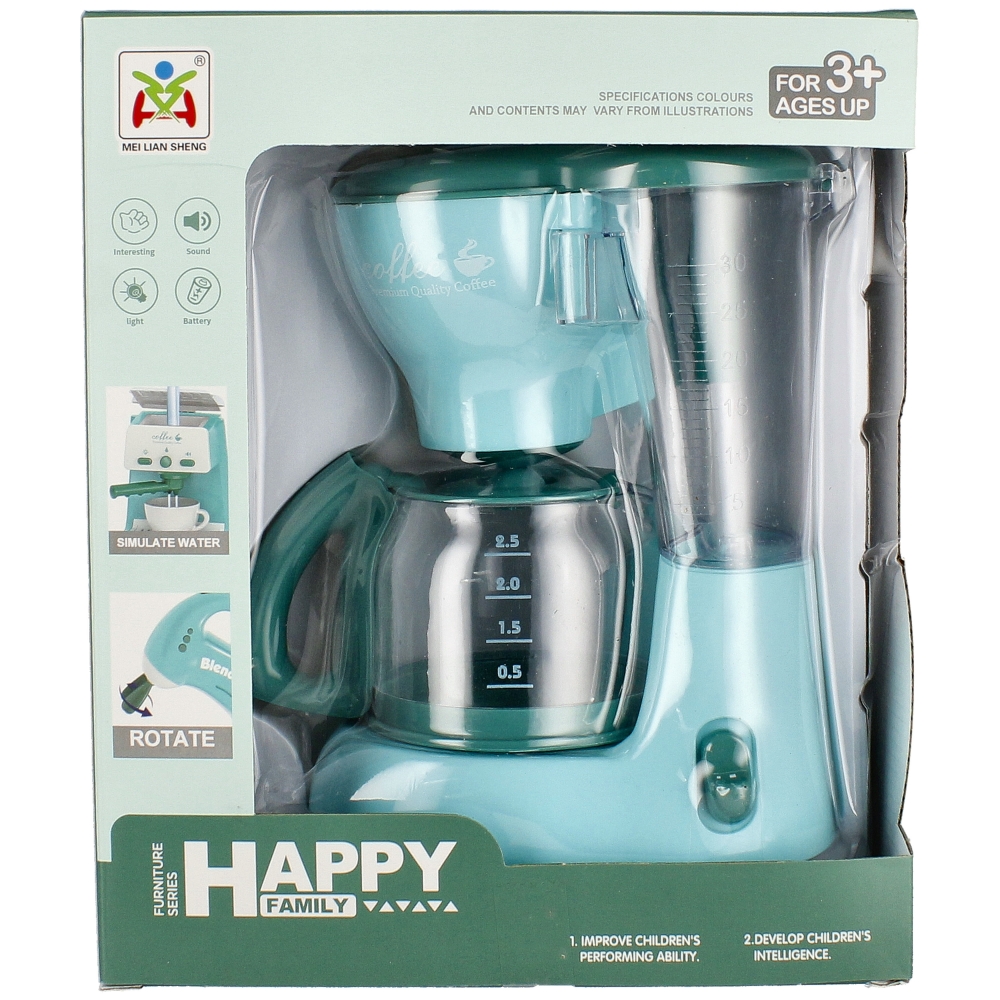Zalety produktu. Ekspres posiada efekty dźwiękowe oraz świetlne- parzenia kawy, bulgotania wody, świeci lampka zasilania na czerwono, ekspres posiada pojemnik na wodę który po napełnieniu pobiera ją, przez zbiornik leje się woda prosto do dzbanka, dzięki czemu idealnie imituję proces parzenia kawy.