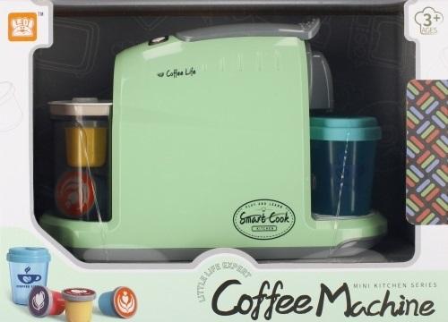 Zalety produktu : ekspres posiada efekty świetlne oraz dźwiękowe, parzenie kawy, bulgotania wody, posiada pojemnik na wodę który po napełnieniu pobiera ją, a kubek po napełnianiu wodą zmienia kolory imitując napój-kawę. Najlepiej smakuje kawa przygotowana samemu. Pozwól dziecku na zaparzenie własnoręcznie kawy ekspresem od MEGA CREATIVE! Produkt ten idealnie odzwierciedla prawdziwy sprzęt kuchenny Wspaniałe kolory i wspaniała zabawa. Całość wykonana z plastiku. Zawartość zestawu: ekspres do kawy, kubek, 3x kapsułka z kawą. Wymiary/waga/zasilanie: wymiary produktu (dł. x wys. gł.) [cm]: 25x18x9. Wymiary opakowania (dł. x wys. x gł.) [cm]: 29x21x11 ,waga produktu bez opakowania [kg]: 0,38 kg, waga w opakowaniu [kg]: 0,58 kg, wymaga zasilania bateriami 3 x AALR06- nie załączono do zestawu. Przeznaczony dla dzieci w wieku 3+. Pakowany w kartonik z okienkiem.