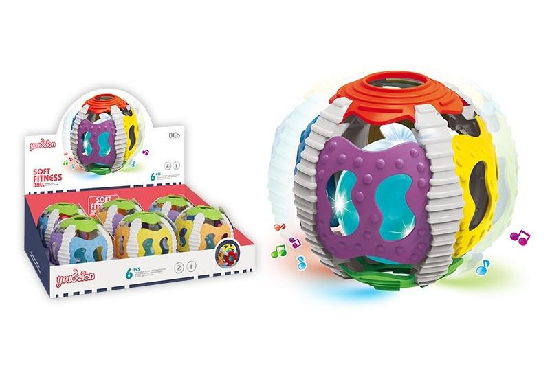 Funkcje: elastyczna kula o średnicy 10 cm, sensoryczne boki, w środku plastikowa kulka z dźwiękiem i światłem.