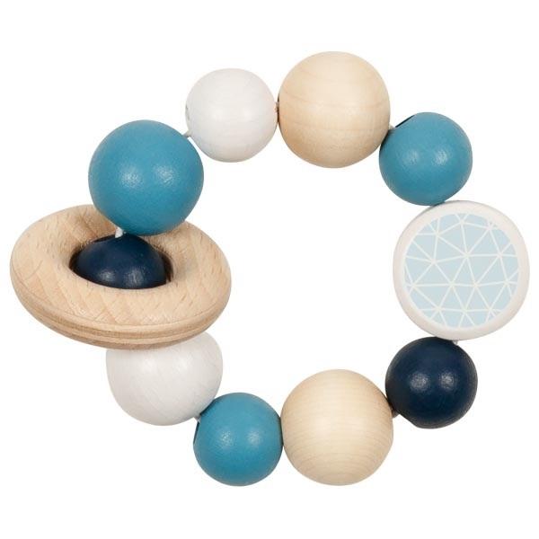 Seria gryzaków niemowlęcych od Heimess w modnych pastelowych kolorach spodoba się każdemu świeżo upieczonemu rodzicowi. Elastyczny gryzak z koralami zachęci malucha do poznawania świata. Zabawka ćwiczy paluszki, a gryzienie drewnianych elementów koi obolałe dziąsła. Bawiąc się tym gryzakiem maluch rozwija umiejętność chwytania. Tutaj kupisz wersję w wersji kolorystycznej dla chłopca. Materiał: drewno.