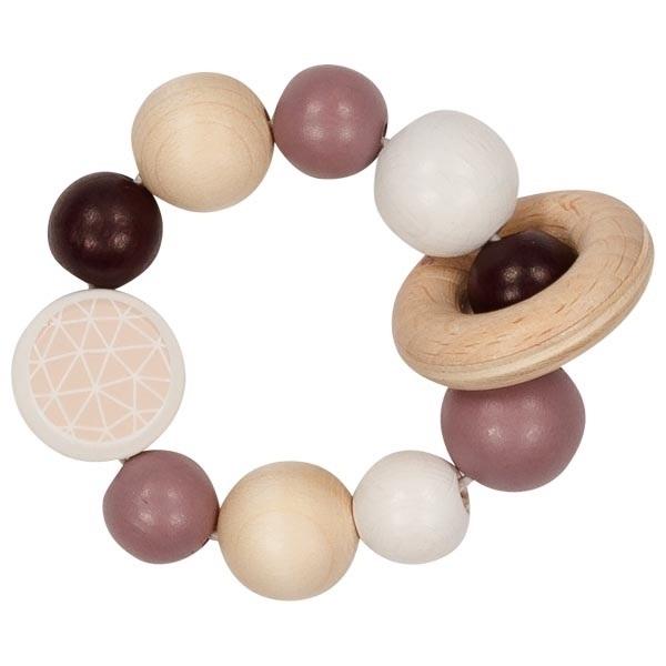 Seria gryzaków niemowlęcych od Heimess w modnych pastelowych kolorach spodoba się każdemu świeżo upieczonemu rodzicowi. Elastyczny gryzak z koralami zachęci malucha do poznawania świata. Zabawka ćwiczy paluszki, a gryzienie drewnianych elementów koi obolałe dziąsła. Bawiąc się tym gryzakiem maluch rozwija umiejętność chwytania. Tutaj oferujemy wersję w odcieniach różowego. Materiał: drewno.