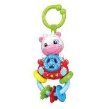Zabawna grzechotka elektroniczna z wieloma dźwiękami i melodyjkami, wystarczy przekręcić kierownicę. 3 zawieszki wykonane z miękkiego tworzywa sztucznego są idealne do gryzienia. Łatwy do zawieszenia na wózku za pomocą praktycznego kółka.