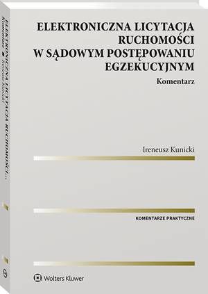 Publikacja stanowi jedyny na rynku wyczerpujący komentarz do przepisów regulujących elektroniczną licytację ruchomości w sądowym postępowaniu egzekucyjnym. Obejmuje analizę nie tylko art. 879(1)–879(11) k.p.c., lecz także art. 864–879 k.p.c. normujących „ustną” (tradycyjną) formę licytacji ruchomości oraz dwóch rozporządzeń Ministra Sprawiedliwości dotyczących elektronicznej bądź ustnej licytacji ruchomości. Wszystkie przepisy zostały skomentowane szczegółowo, bez unikania zagadnień trudnych lub kontrowersyjnych, nieprzedstawianych dotychczas w literaturze przedmiotu. Czytelnicy odnajdą tu omówienie kwestii odnoszących się m.in. do: - prawidłowego przebiegu licytacji elektronicznej (np. dopuszczalności licytacji i jej przedmiotu, - czasu, formy, treści i miejsca obwieszczenia o licytacji, chwili rozpoczęcia i zakończenia licytacji, niedopuszczenia osób wyłączonych od przetargu), - poprawności przeprowadzenia licytacji przez komornika, - zapewnienia w sądach dostępu do systemu teleinformatycznego obsługującego licytację elektroniczną, - kwestionowania (zaskarżania) nieprawidłowych działań komorników i sądów.